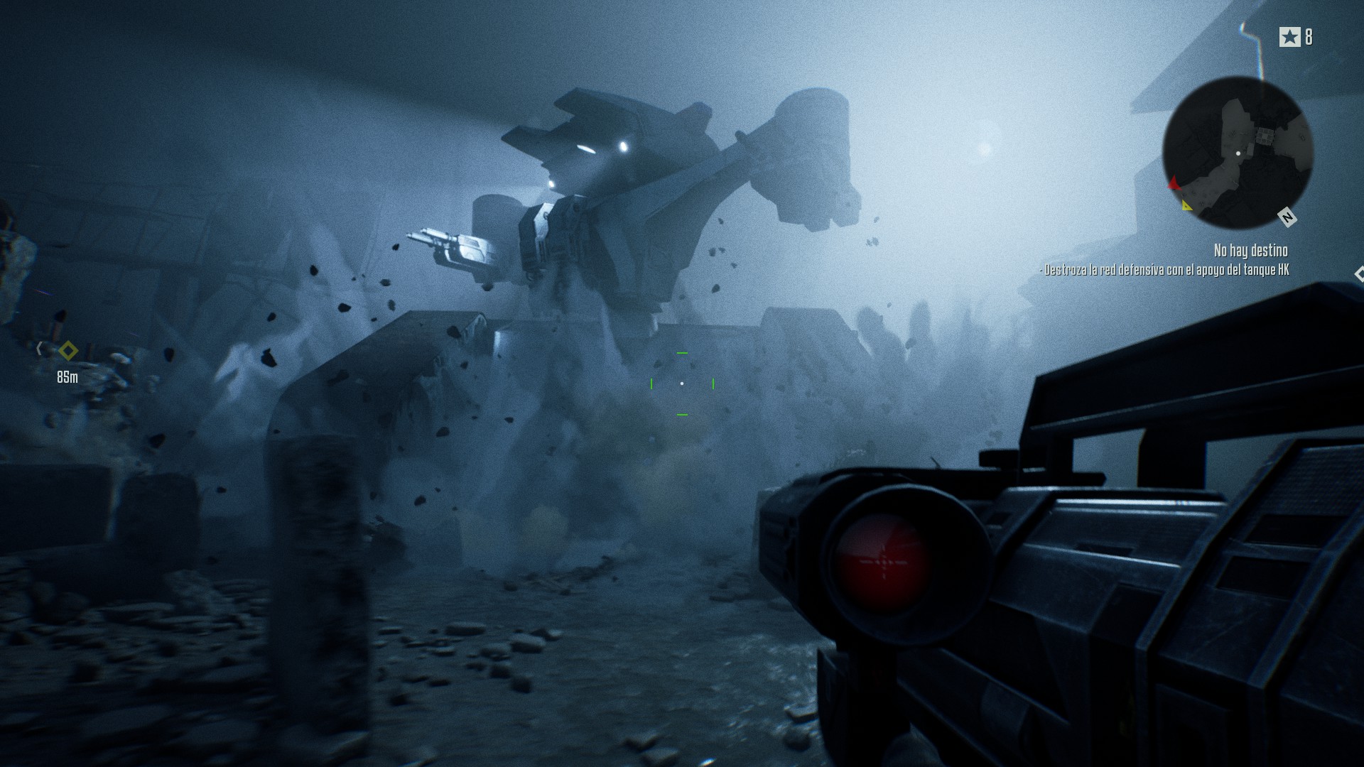 Tan pronto se levanta, mira ambos lados y el cabrón se dirige a la zona donde me había escondido... Solo que a 2-4 metros de distancia; la barra roja de detección se había vuelto blanca hacía un rato ya y el T-808 quedó inmovil mirando a ambos lados hasta que se marchó y volvió a su rutina de patrulla...